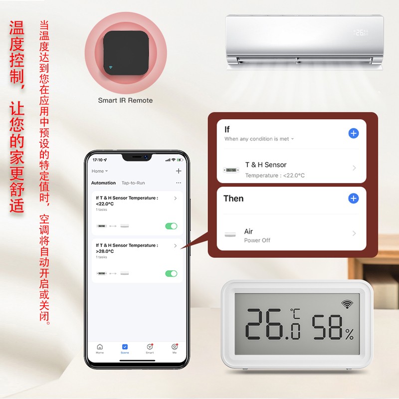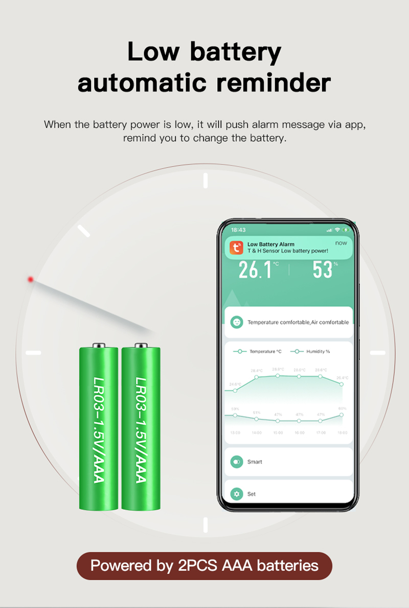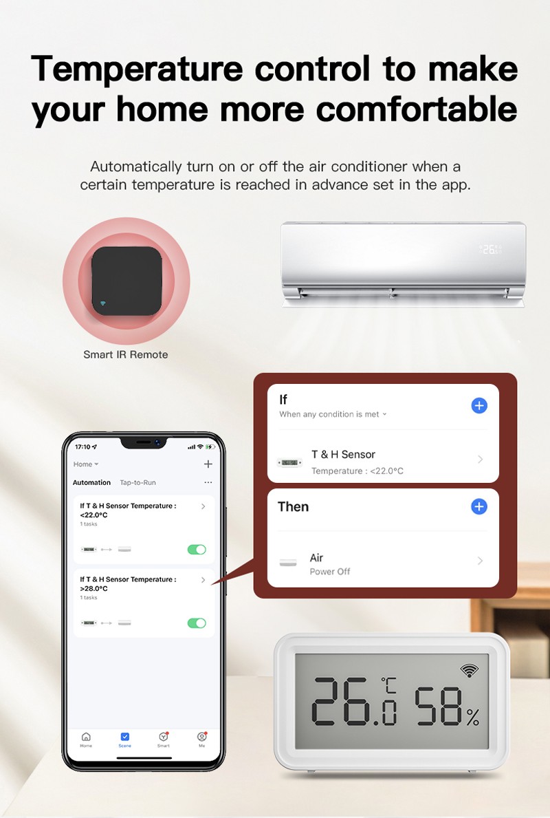 Tuya Smart digital thermometer and hygrometer for home use, baby rooms, wine cellars, and storage rooms. Accurate environmental monitoring.